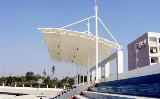 膜結(jié)構(gòu)看臺(tái)新式且新奇的構(gòu)造方式,因?yàn)槠湓煨驮O(shè)計(jì)灑脫幽美、材料輕巧便于拆卸、有高寬比的自洗特性和耐老化工作能力,很多的新教學(xué)區(qū)基本建設(shè)都剛開(kāi)始選用這類(lèi)與眾不同時(shí)尚潮流的構(gòu)造方式;